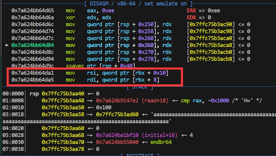 从 rbx 的偏移中读取数值,其中就有我们传入的 0x2。