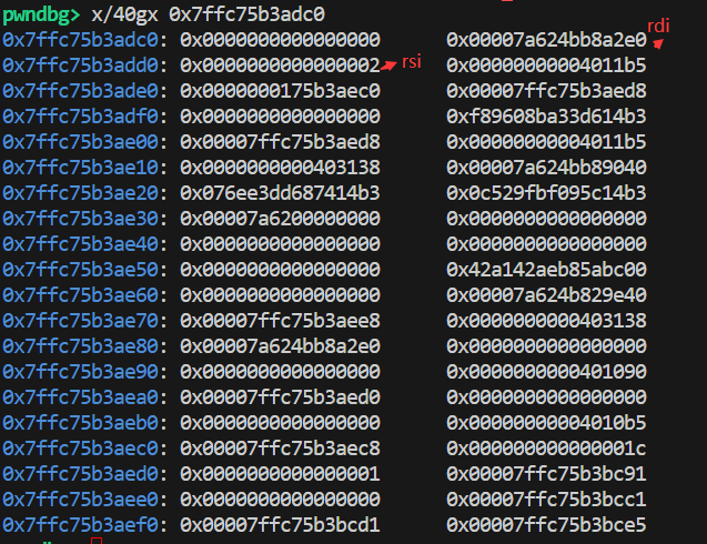 这也意味着有个关键的东西 (struct link_map) 也被 push 了进去,重开再观察一次。