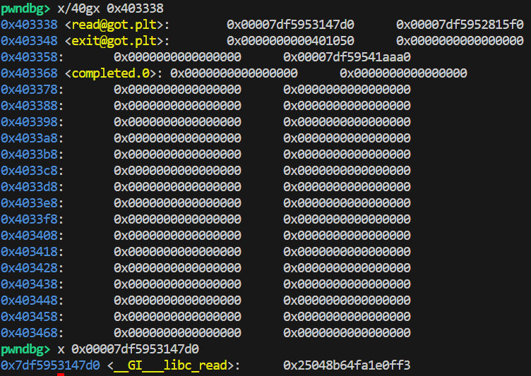 在经过这个神必函数后,@got.plt被填上相应libc的地址,下次调用直接跳转: